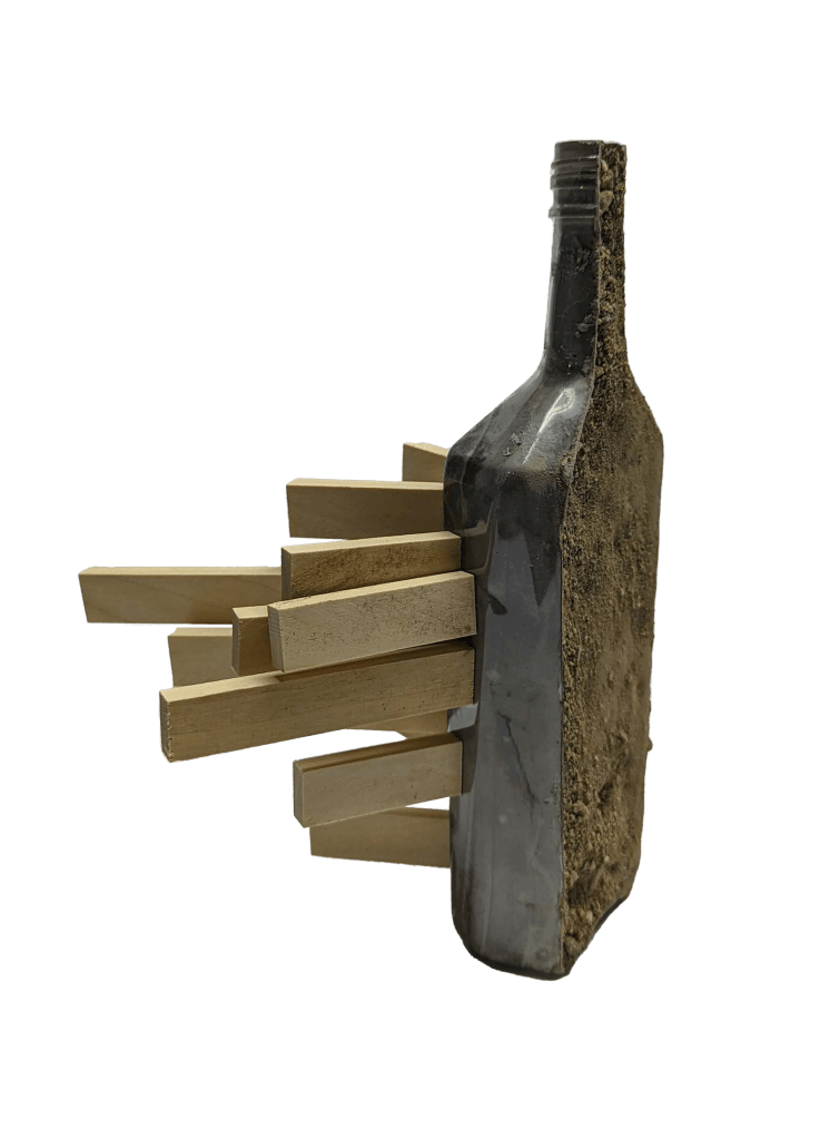 Employing positive psychology, I wanted to change its identity from ‘waste’ to ‘resource’. Designing an independent study around litter, my aim was to create a shift from moral obligation or existential dread to a fun experience. Gamifying litter removal into collecting interesting materials, I demonstrated opportunity out of pollution. The primary barrier, lack of familiarity working with these materials, was overcome by extensive research, experimentation, and iteration. With a philosophy of affordability, minimizing waste, and preventing loss of object identity, many methods were eliminated. Three primary techniques of controlled heat emerged. ‘Spot-welding’ and ‘riveting’, using a wood burner, and ‘shrink-wrapping’ using a heat gun, are demonstrated in three final pieces.